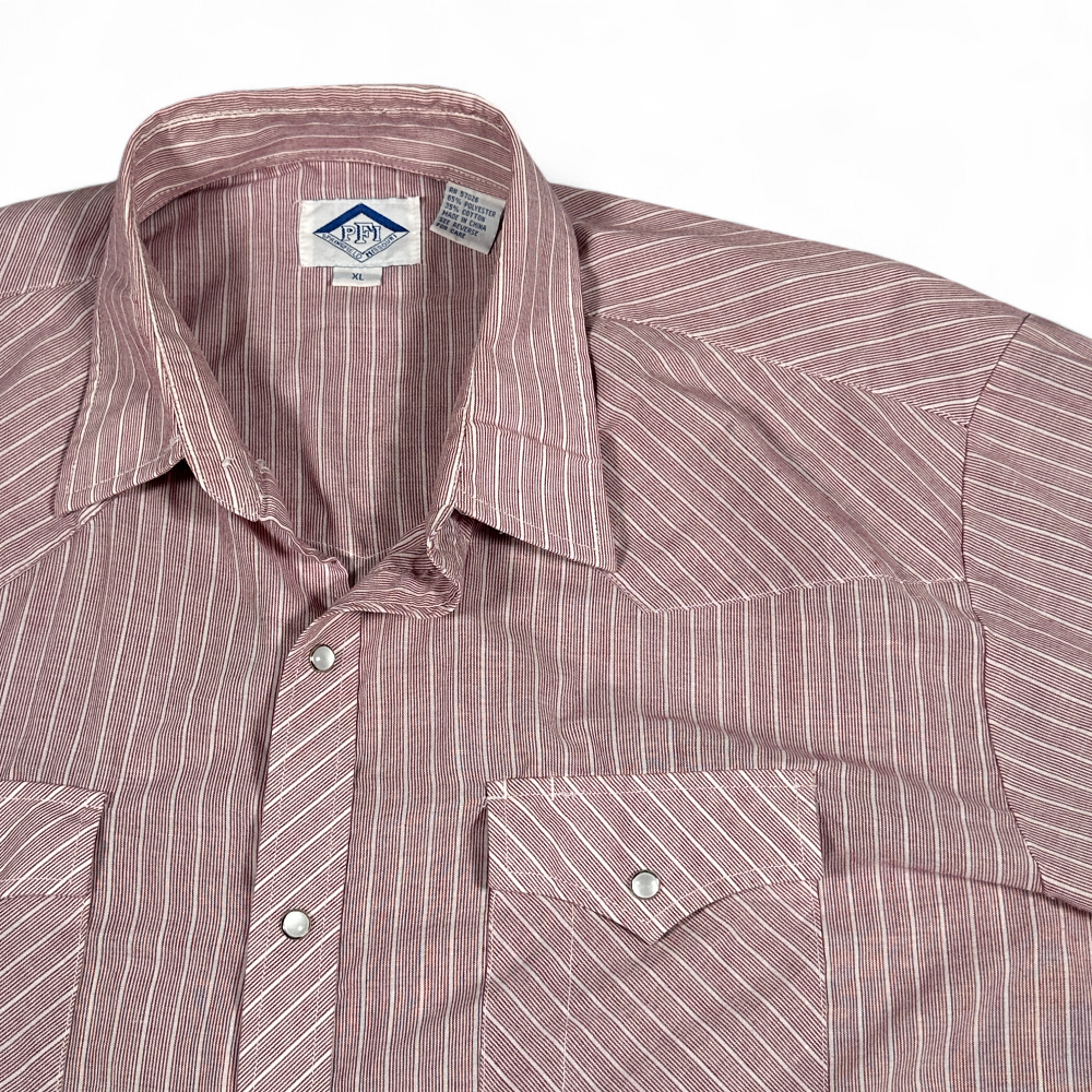 Vintage Western Shirt Adult EXTRA LARGE Red Candy Striped Pearl Snap Cowboy 90s