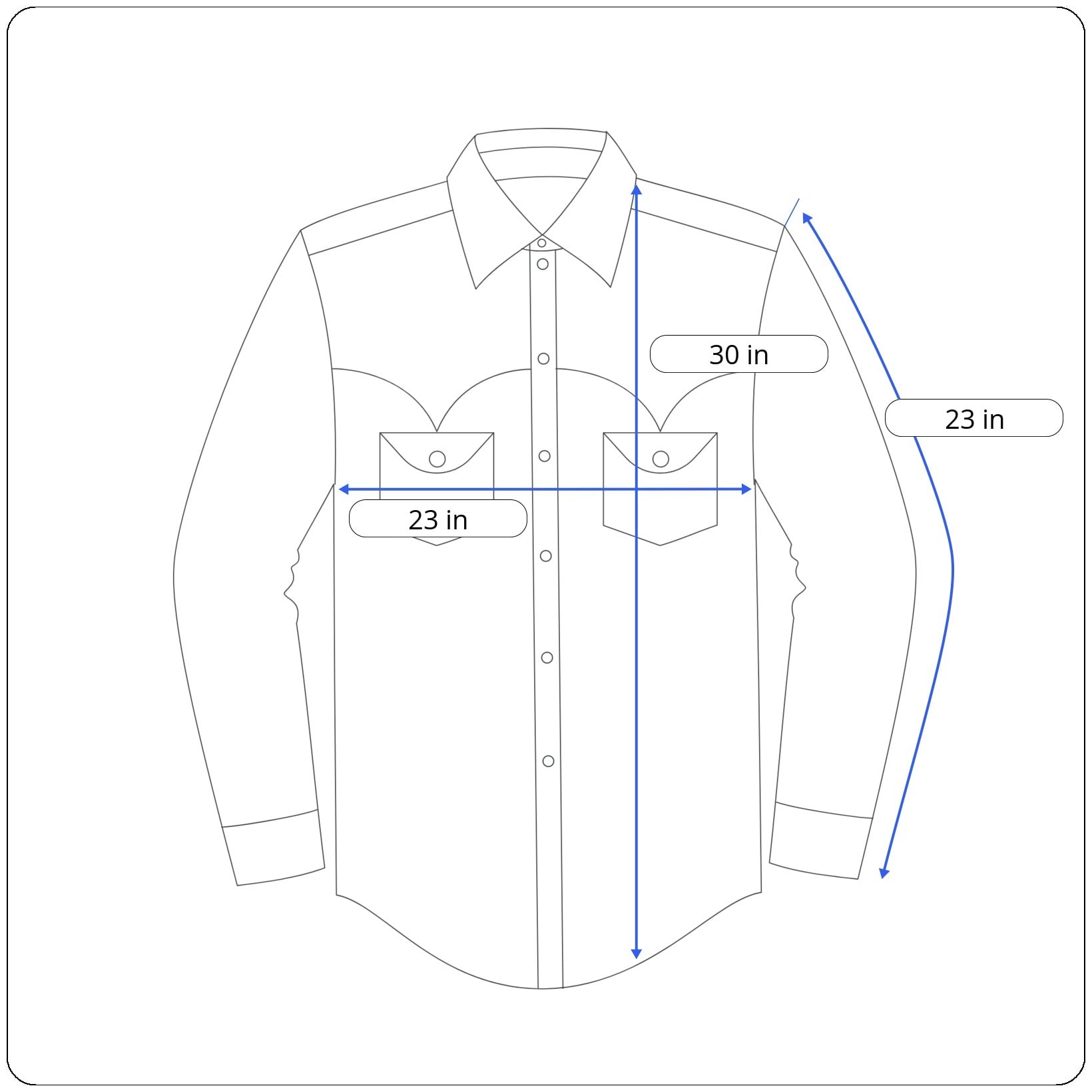Sleeves: 23 inches (shoulder seam to cuff end)