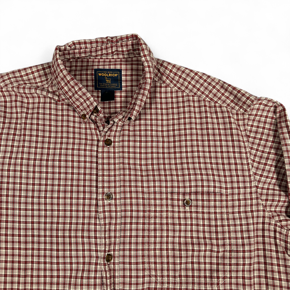 Vintage Woolrich Shirt Adult EXTRA LARGE Red Brown Plaid Cotton Outdoor USA 90s