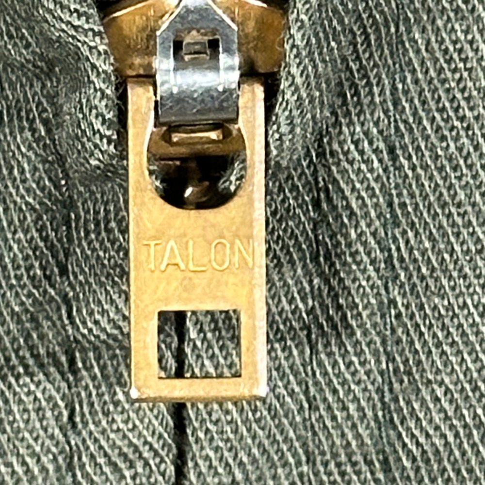 โข 70s vintage green canvas; red quilted lining; fill unknown