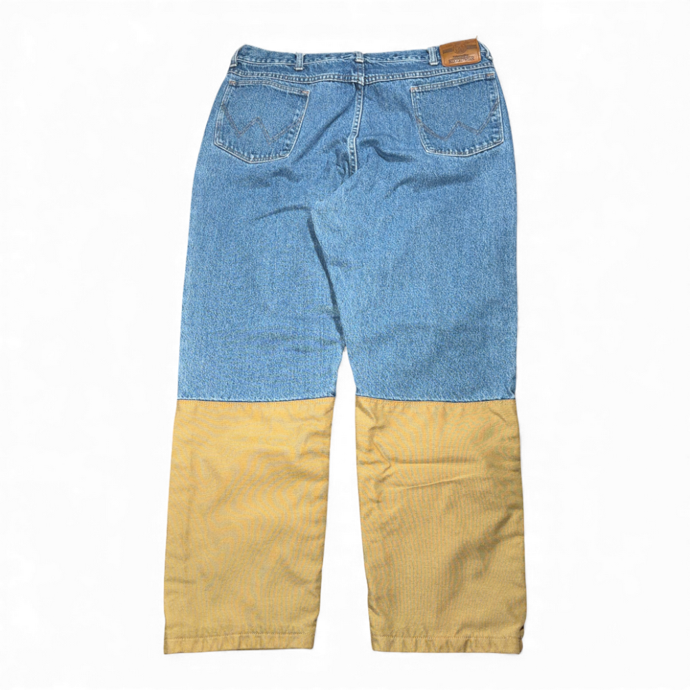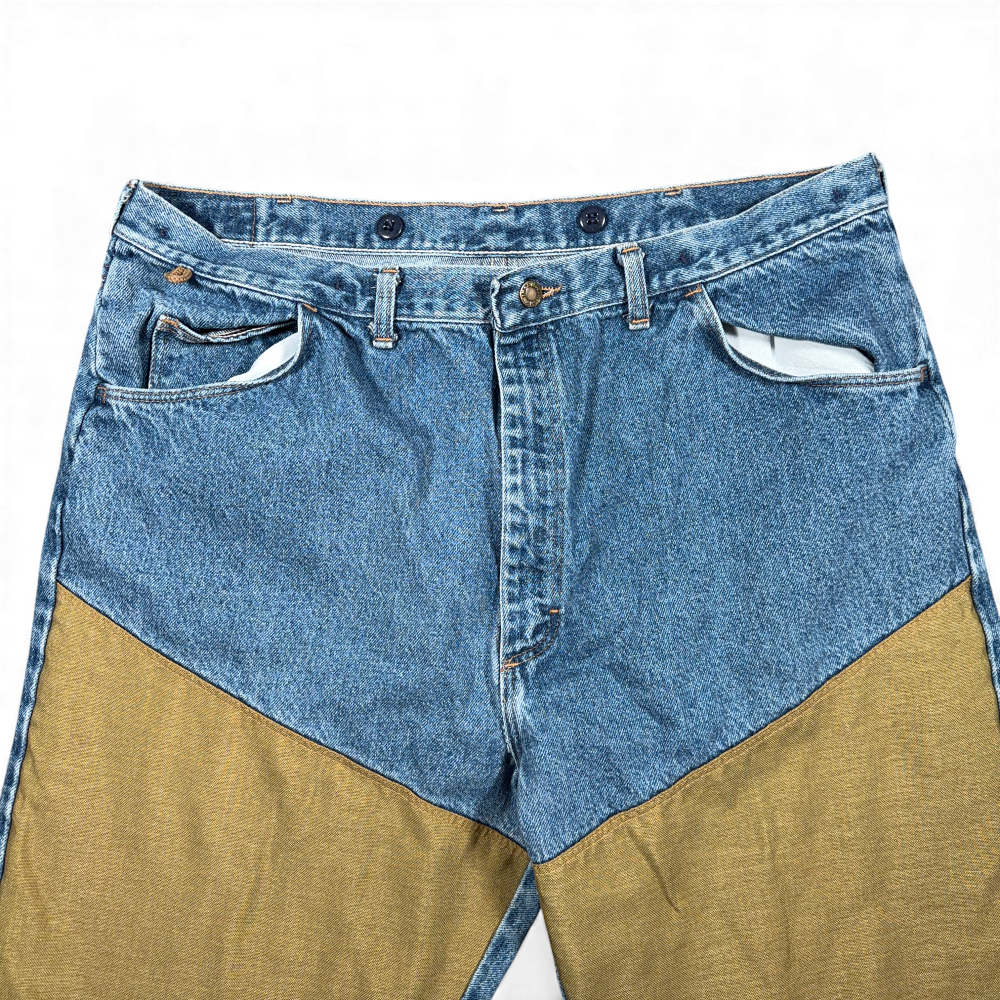• 90s vintage blue cotton denim and gold nylon canvas pants