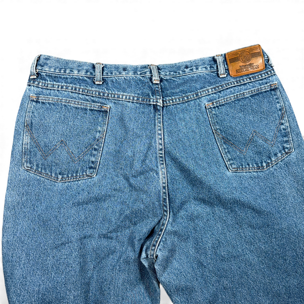 Vintage Wrangler Jeans Mens 39×30 Blue Rugged Wear Canvas Double Knee USA 90s