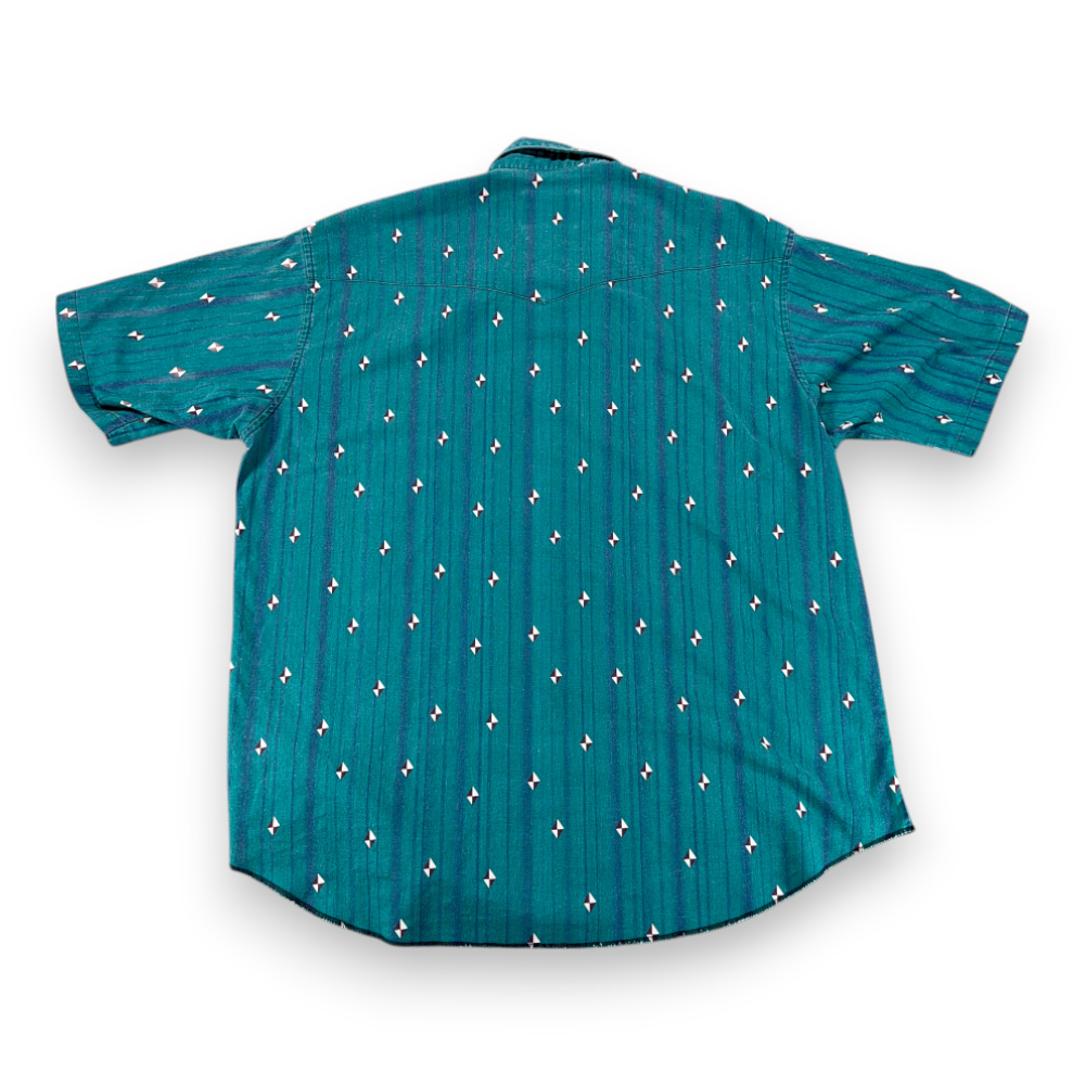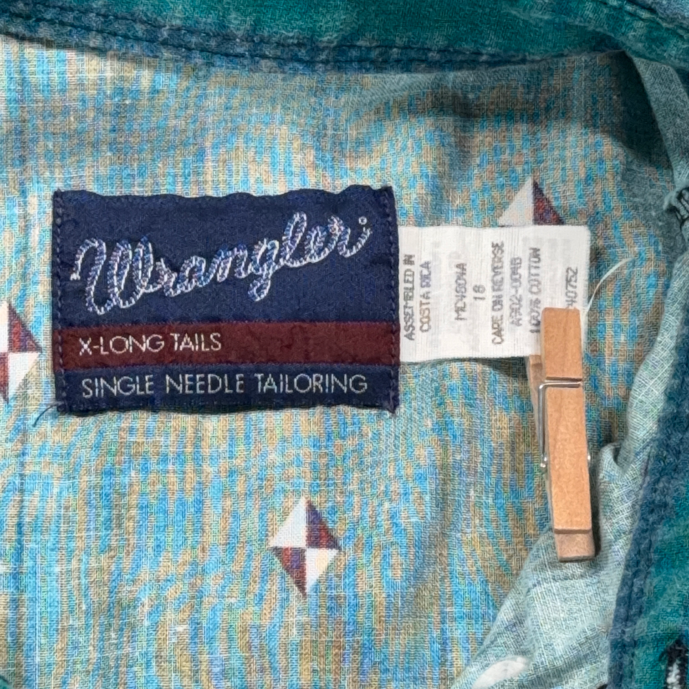Vintage Wrangler Shirt Adult EXTRA LARGE Green Blue Striped Diamond Western 90s