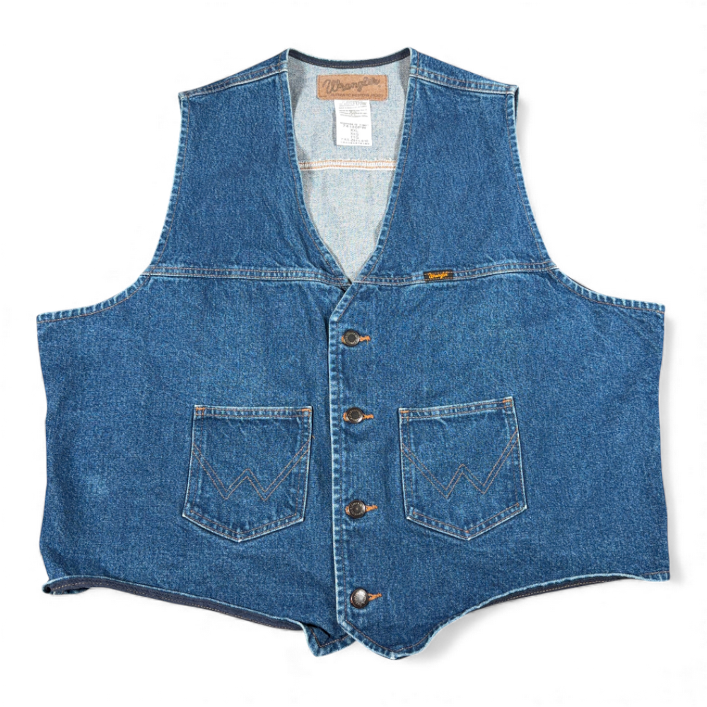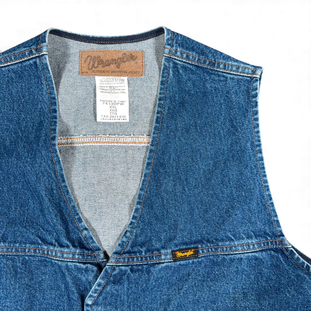 Vintage Wrangler Vest Adult 2XL XXL Blue Denim Jean Western Biker Trucker Y2K