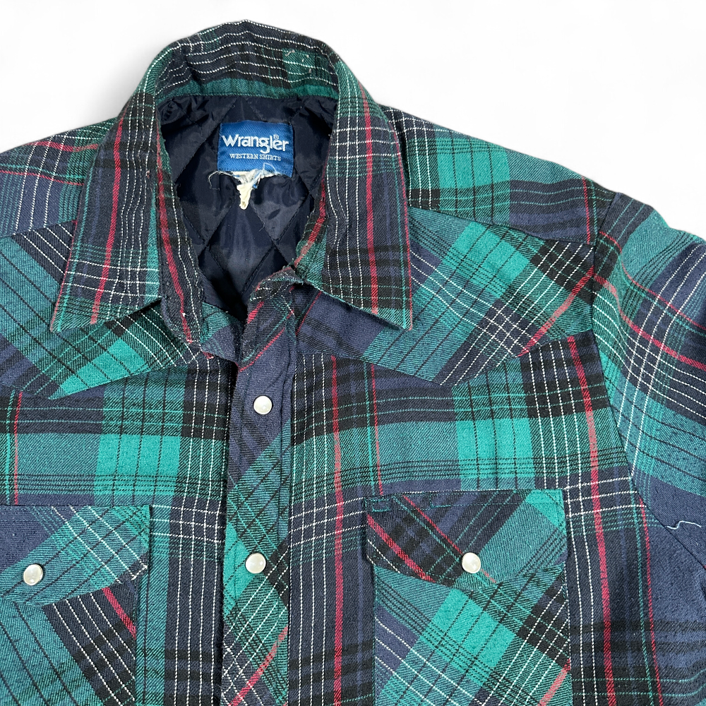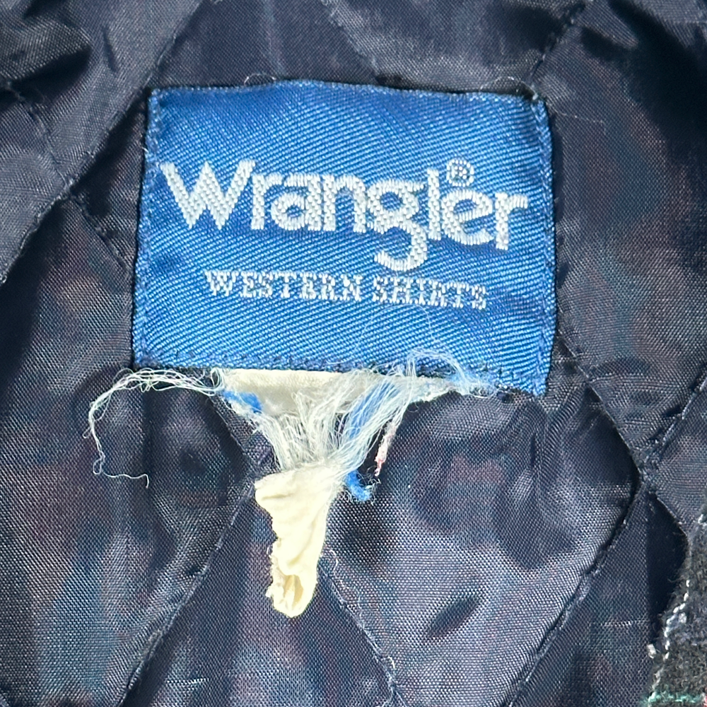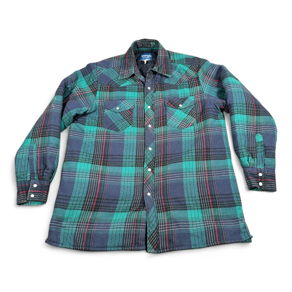 Vintage Wrangler Western Shirt Adult LARGE Blue Plaid Flannel Insulated 90s