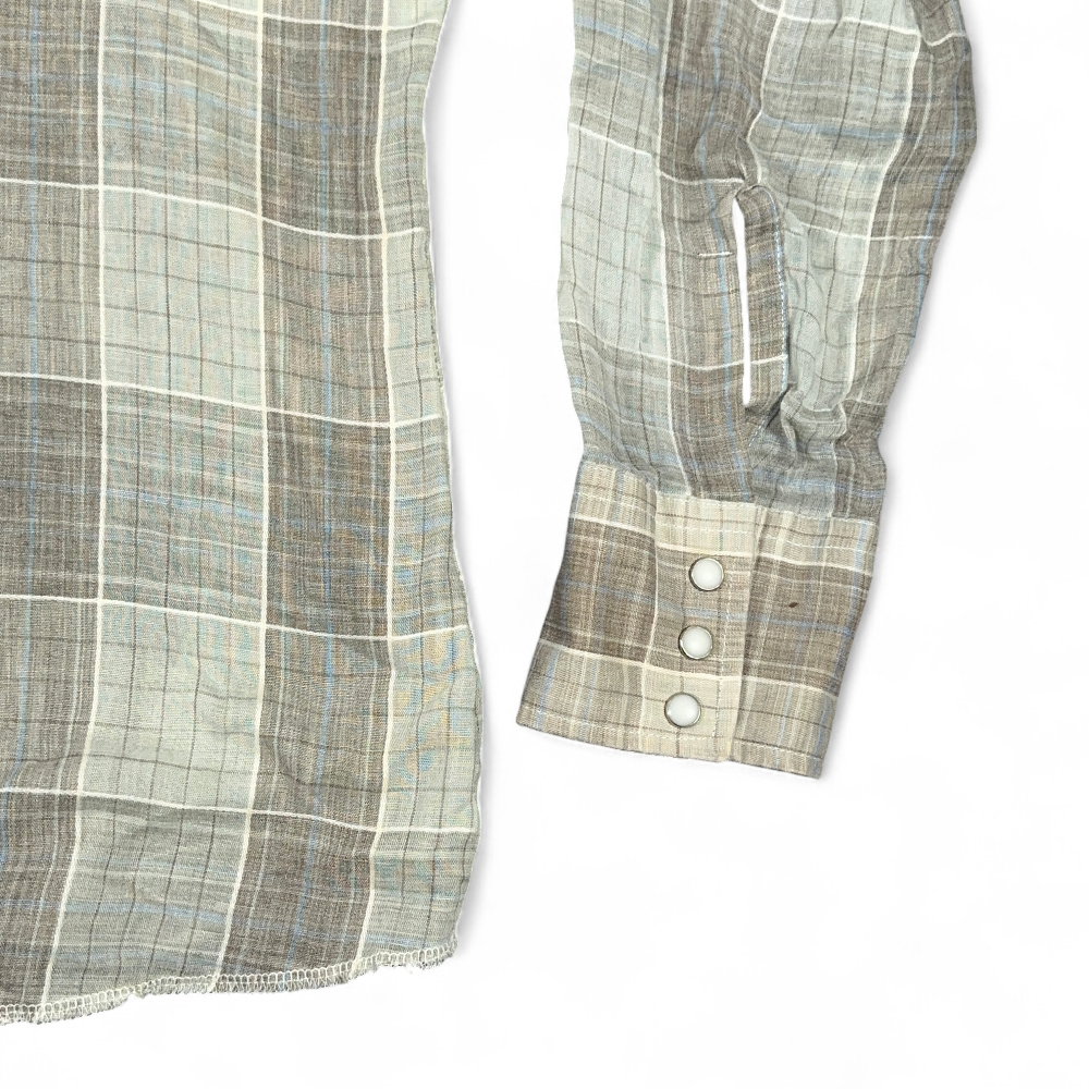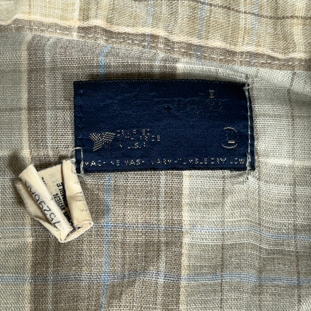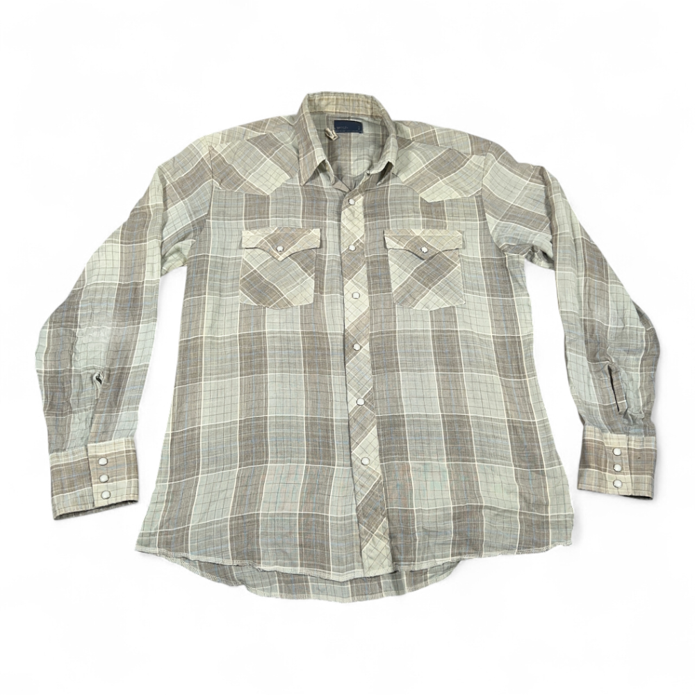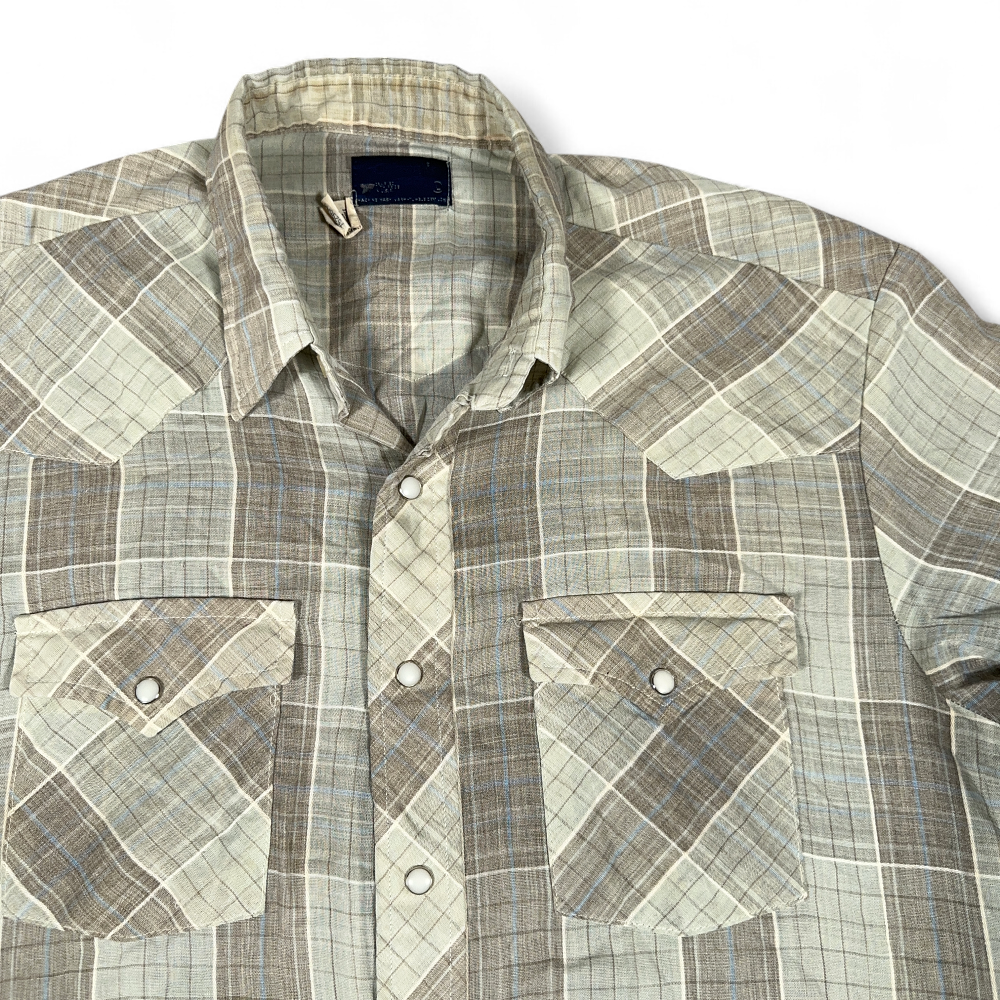 Vintage Wrangler Western Shirt Adult LARGE Brown Plaid Pearl Snap Cowboy USA 70s