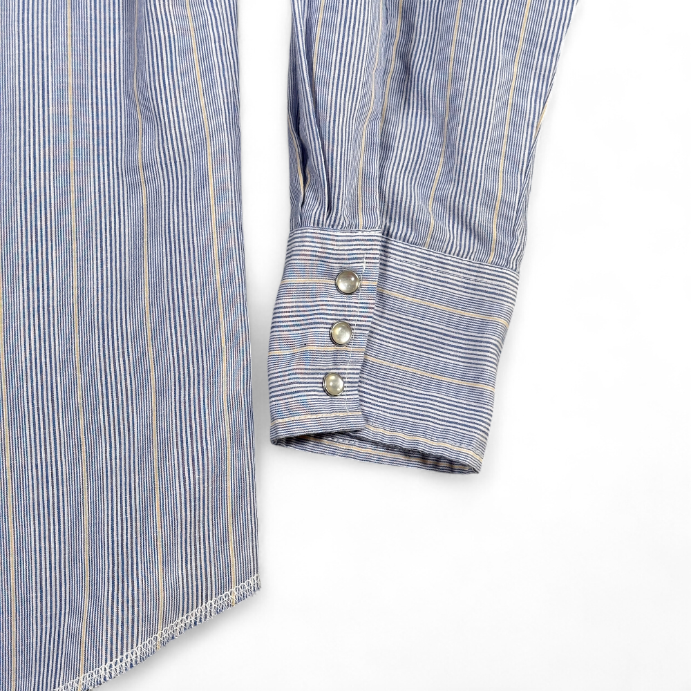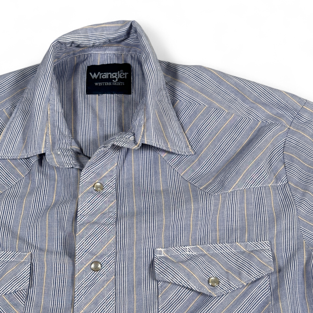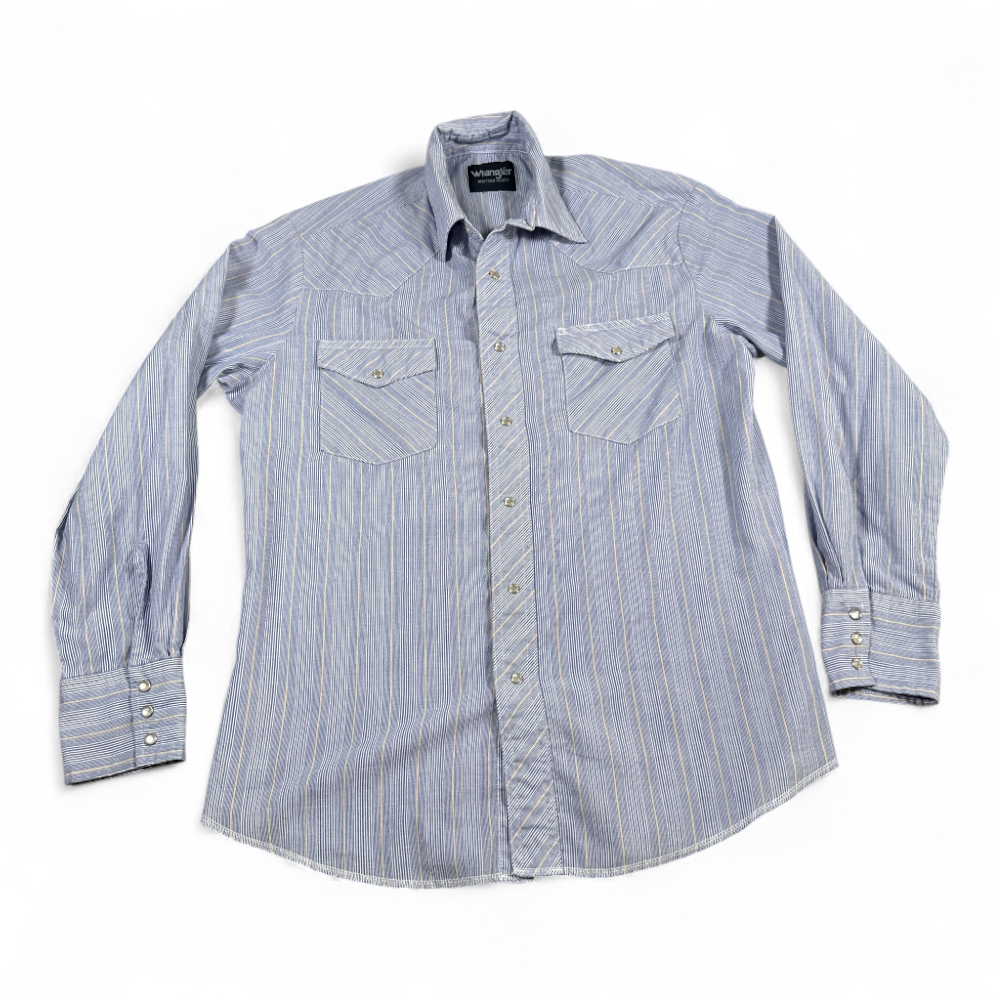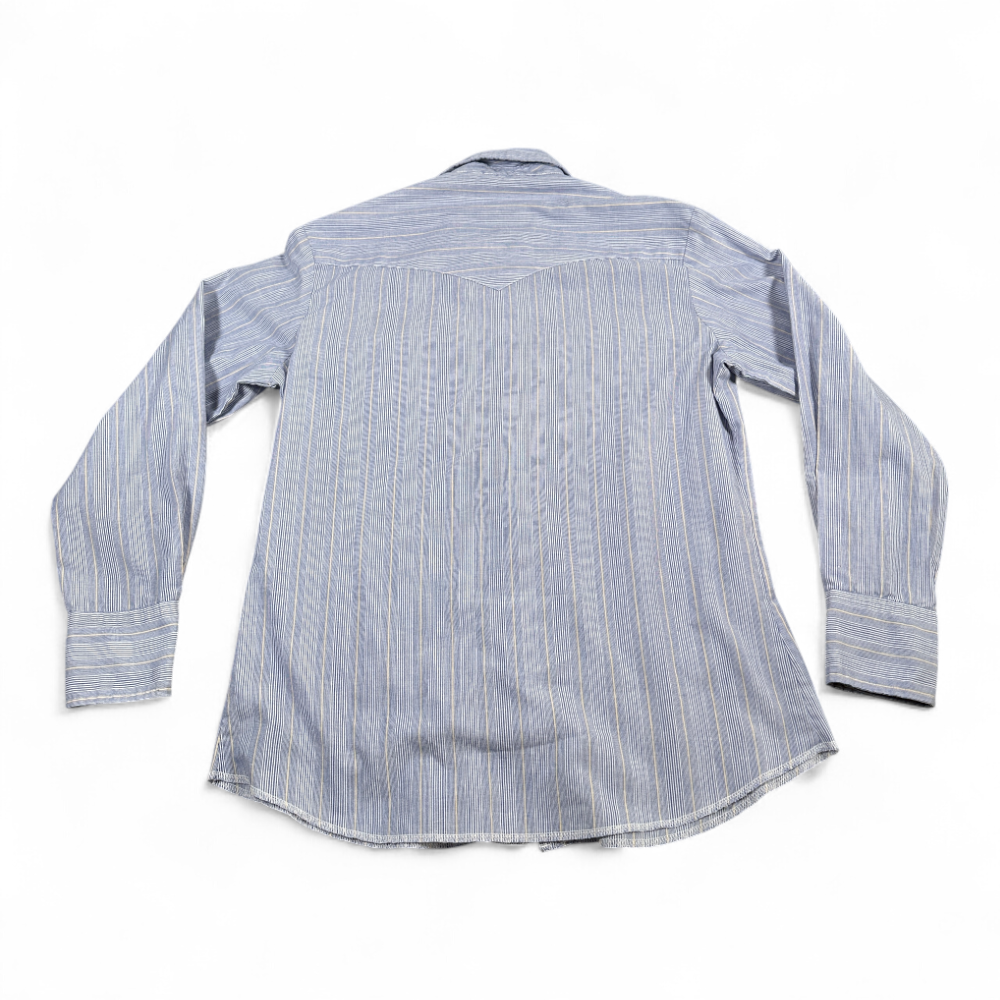 Vintage Wrangler Western Shirt Adult MEDIUM Blue White Pinstripe Cowboy Y2K