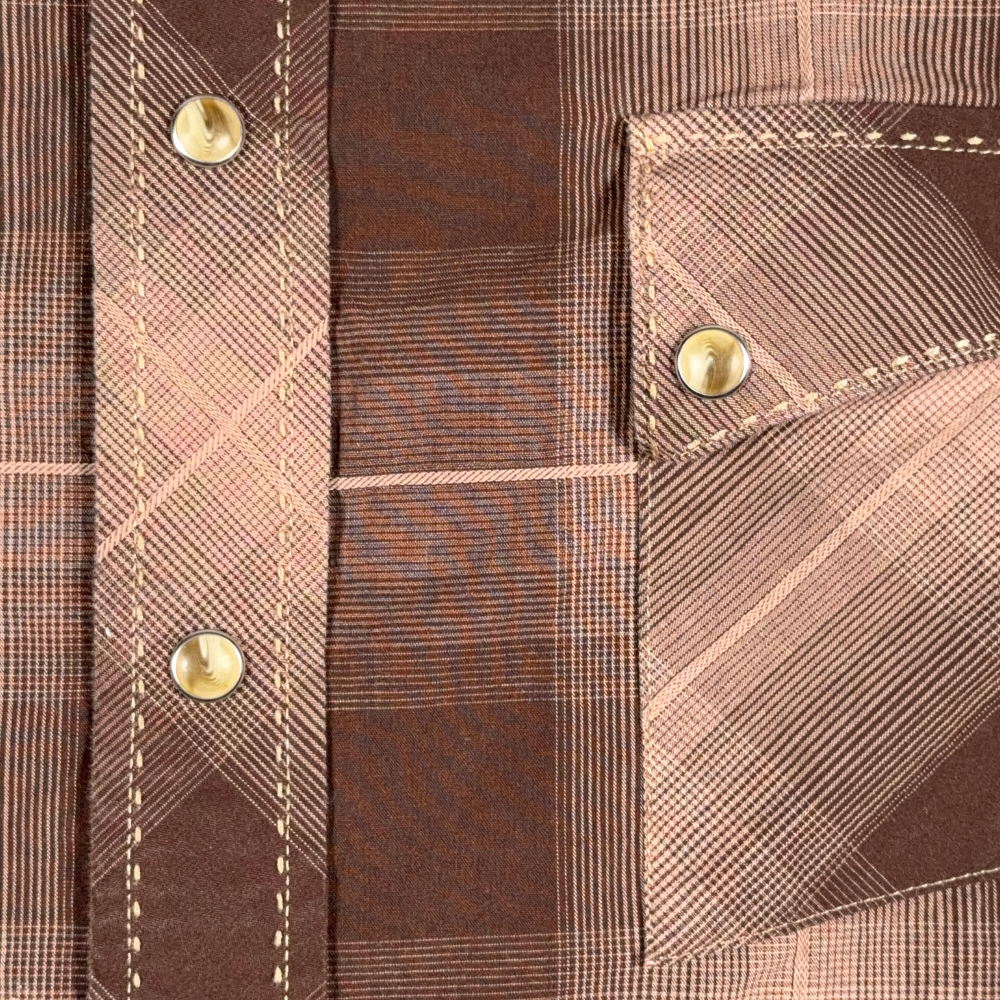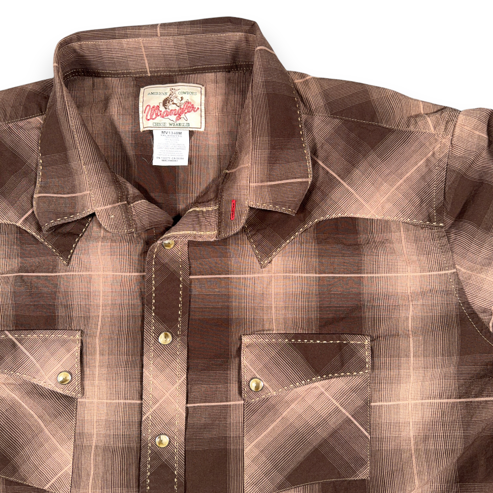 Wrangler Western Shirt Adult 2XL XXL Brown Plaid Pearl Snap American Cowboy