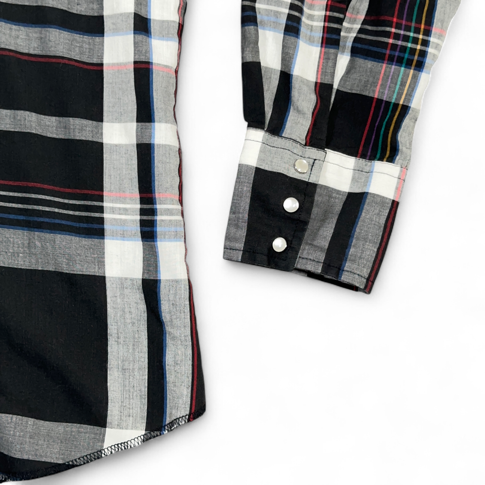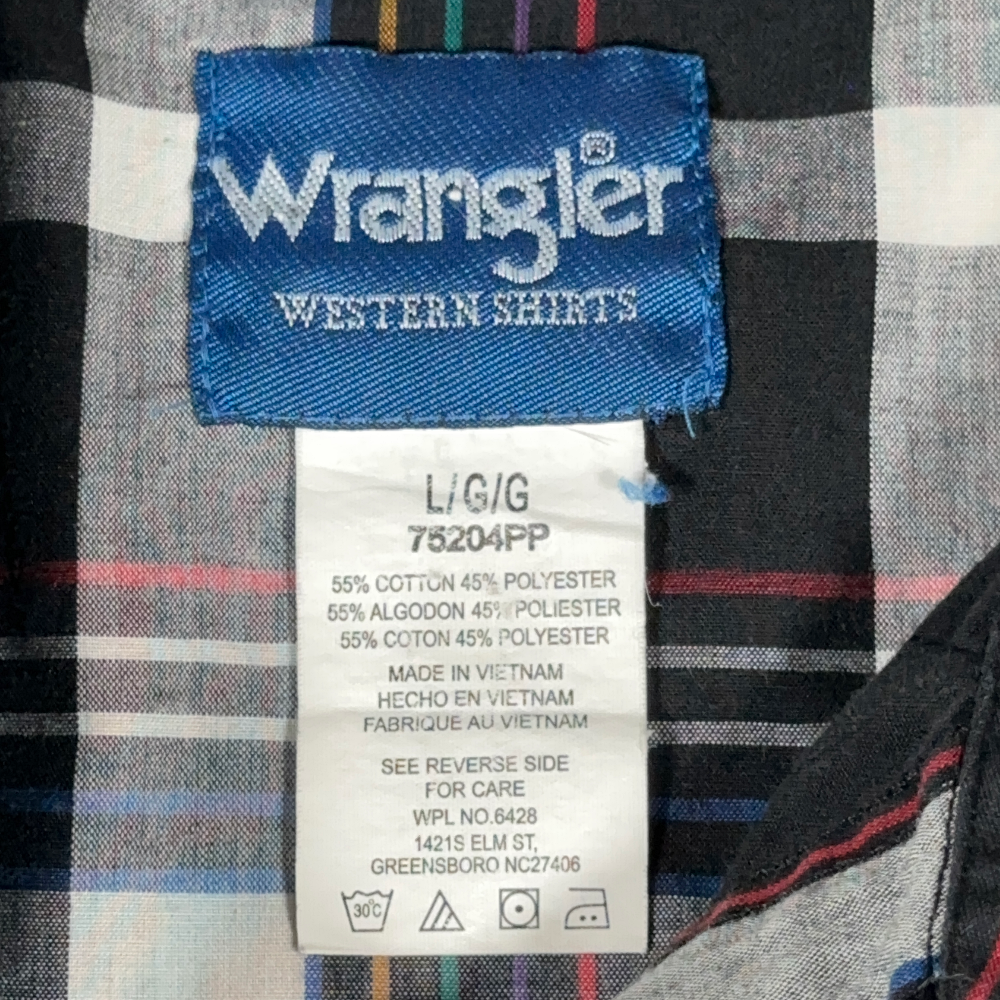 Wrangler Western Shirt Adult LARGE Black Plaid Pearl Snap Colorful Cowboy Y2K
